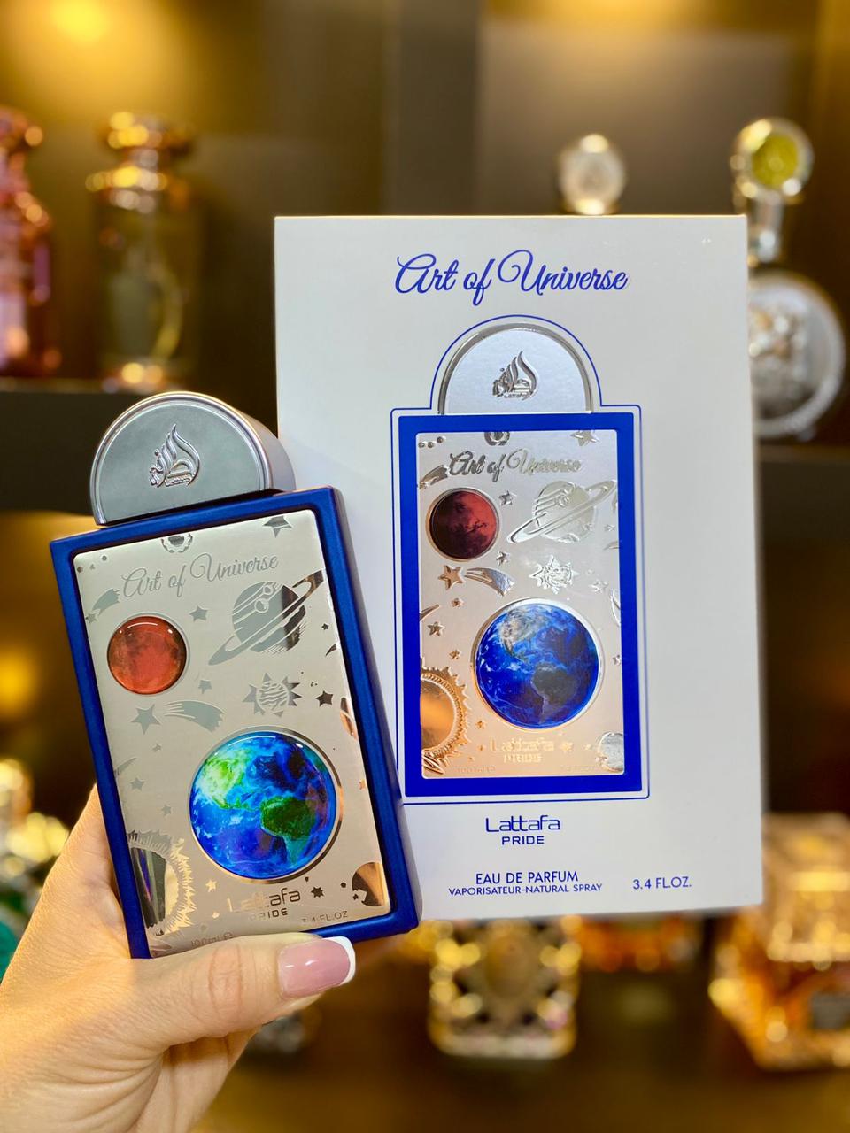 Art Of Universe de Lattafa Perfumes es una fragancia de la familia olfativa Cítrica Aromática para Hombres y Mujeres. Esta fragrancia es nueva. Art Of Universe se lanzó en 2025. Las Notas de Salida son mandarina, jengibre, bergamota y menta; las Notas de Corazón son pera y flor de azahar del naranjo; las Notas de Fondo son almizcle, ámbar y cedro.